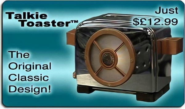Manufactured by Taiwan-based Crapola Inc, the best-selling Talkie Toaster is novelty kitchen appliance said to be able to sense the mood of its owner and engage in breakfast conversation appropriately.